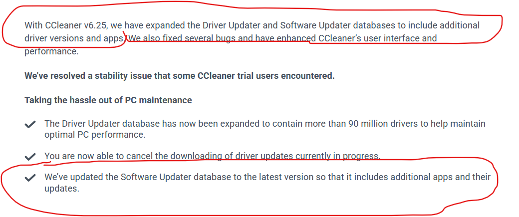 For example you will often see a line like this in the CCleaner version notes: