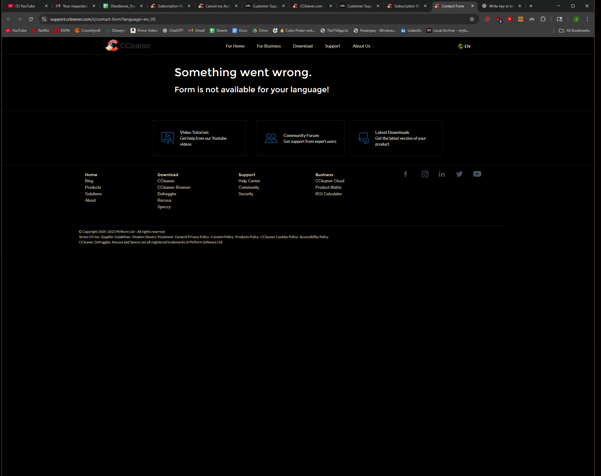 CANCEL MY ACCOUNT CCLEANER YOU LOSERS! YOU MAKE THE SUPPORT FORM UNAVAIALBLE IN MY LANGUAGE SO I CAN’T SUBMIT A TICKET AND CAN’T LOG IN. Cancel my account now you {Removed by Mod}