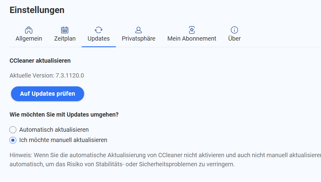 Hello, here it is on “Manual”, so the update check should not open at all. Nevertheless, CC makes an update check every day, the program opens unasked. There is no entry in the Windows startup Manager. But the subject is not new…