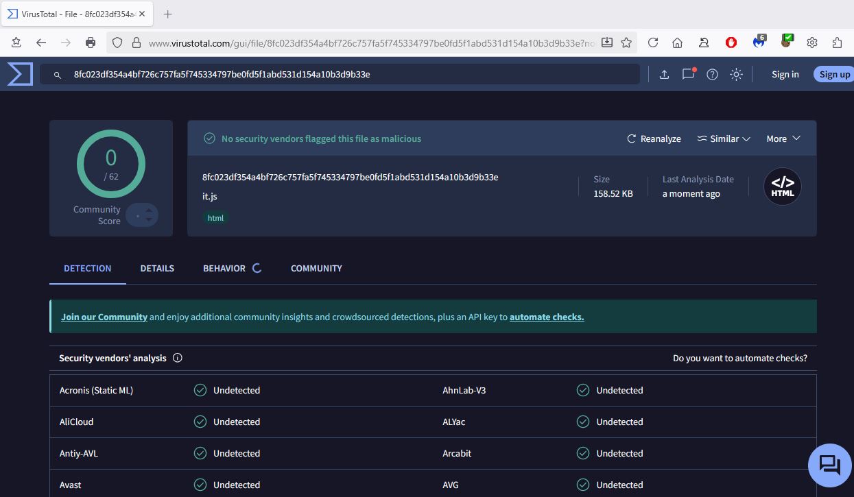 PS I.ve done all 3 on the copy of “it.js” on my Win 10 laptop and they all say it’s clean.