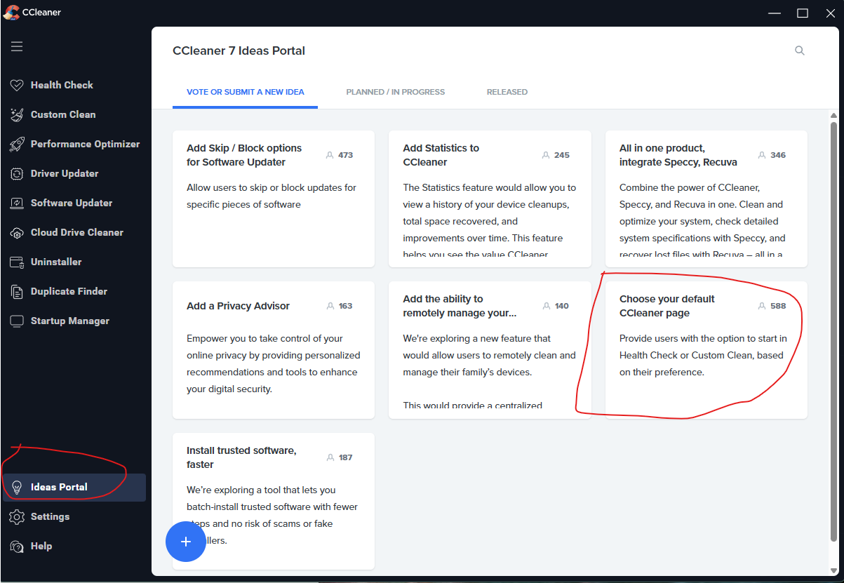 Is there a way to make Custom Clean the start screen in version 7?