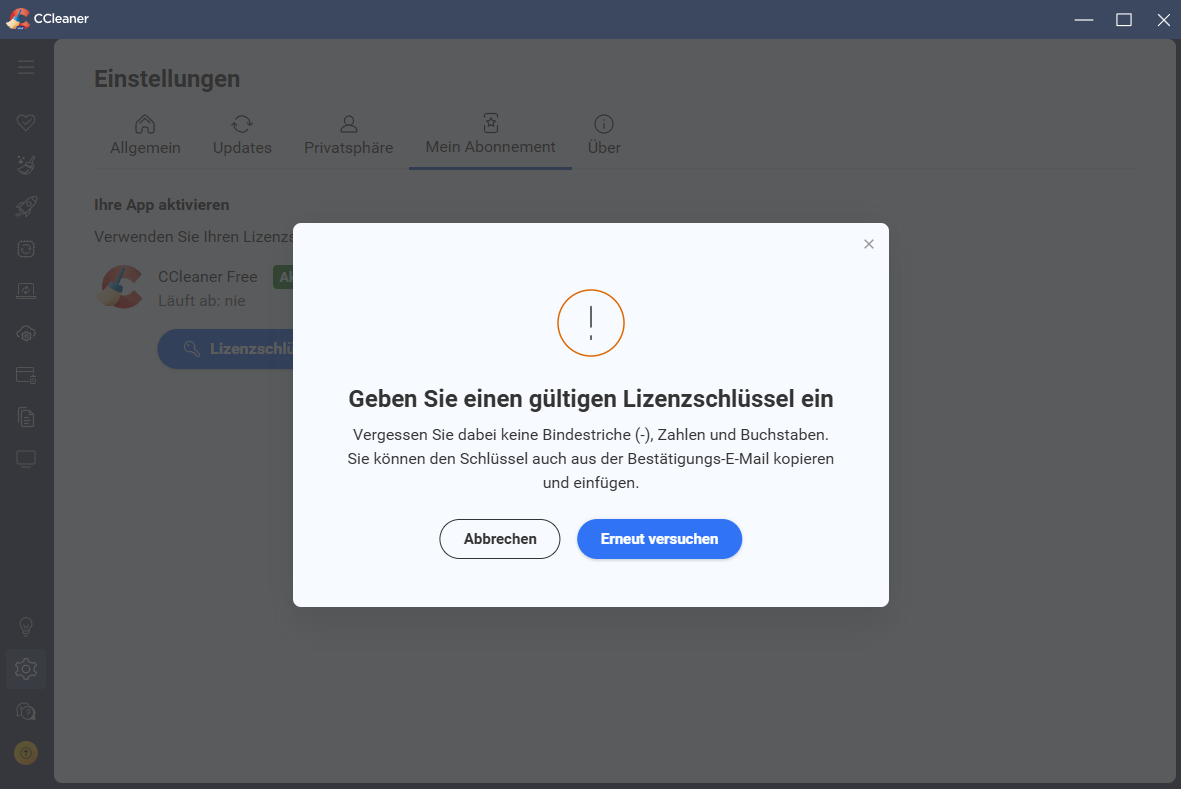 I have a 3 year license key that i bought 3 month ago. after trying to put it in and update my “free v7 ccleaner” it gives me the message “put in a valid key”