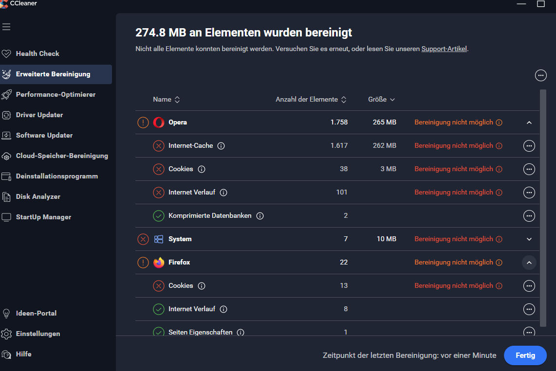 i have now restart my laptop. nothing is open and it still doesn’t work. as i said, with v6 everything ran without problems, even if the browsers was first closed by the cleaner