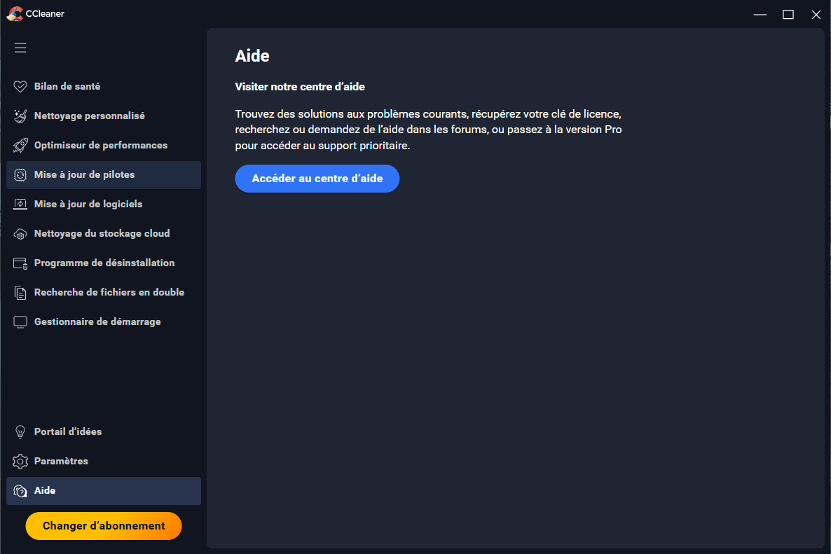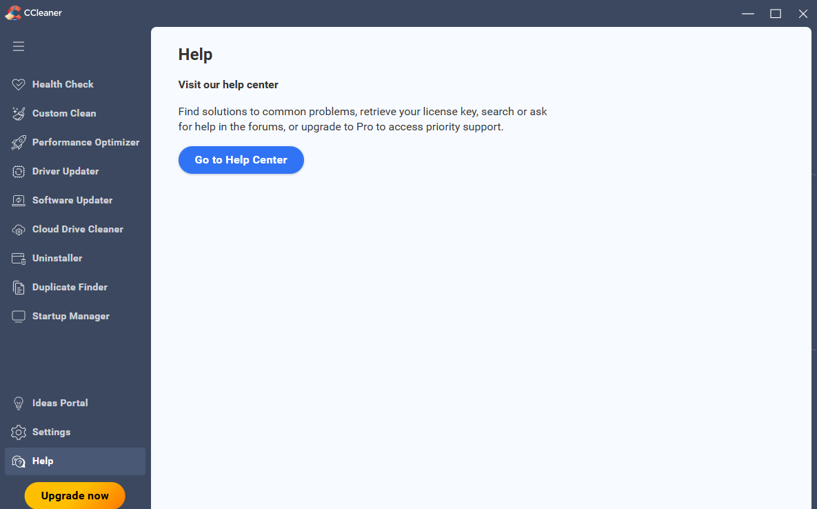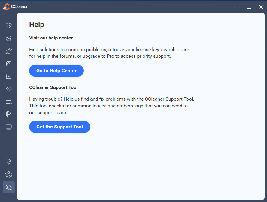 When you click Help in the left menu of CCleaner 7, you should see the screen below.