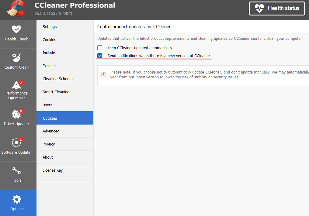 What you are getting may just be a notification letting you know that a newer version of CCleaner is available.