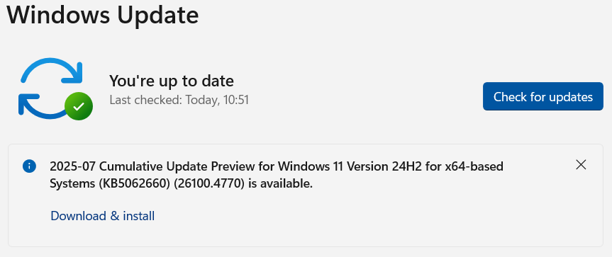 OK I would be careful here in case it’s trying to do the optional Windows Cumulative Update Preview.