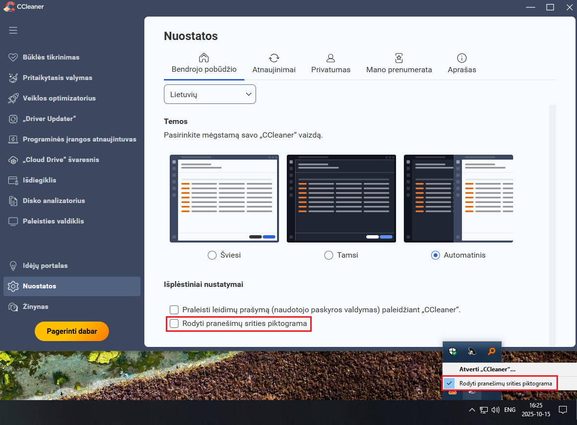 - CCleaner shown in SysTray, but there’s unchecked setting;