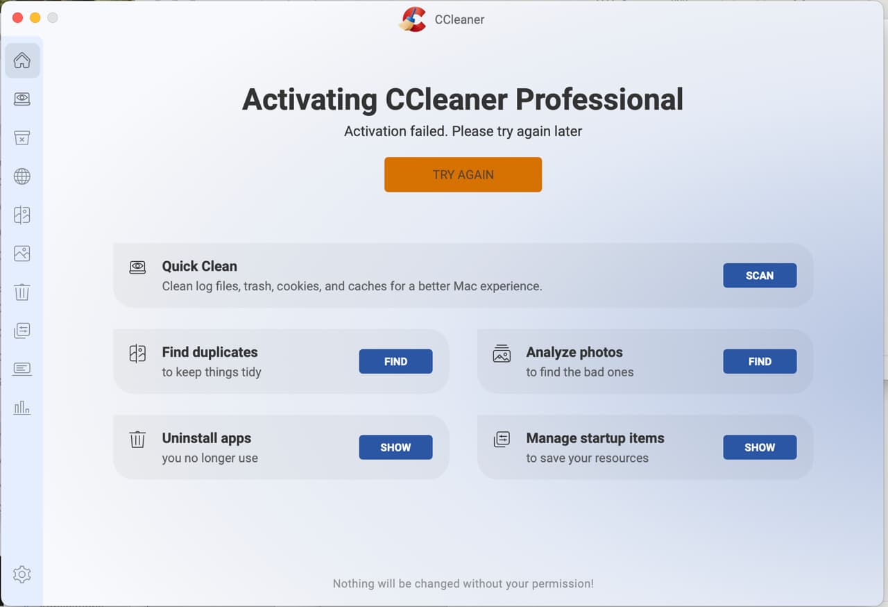 The actual error is not that “Activation failed”, but that the warning “Activation failed” is shown by error. One morning when running my CCleaner I forgot about the warning and clicked SCAN directly, - and the scan run normally! I have since done the same several times when the warning comes up, and every time this has worked normal.