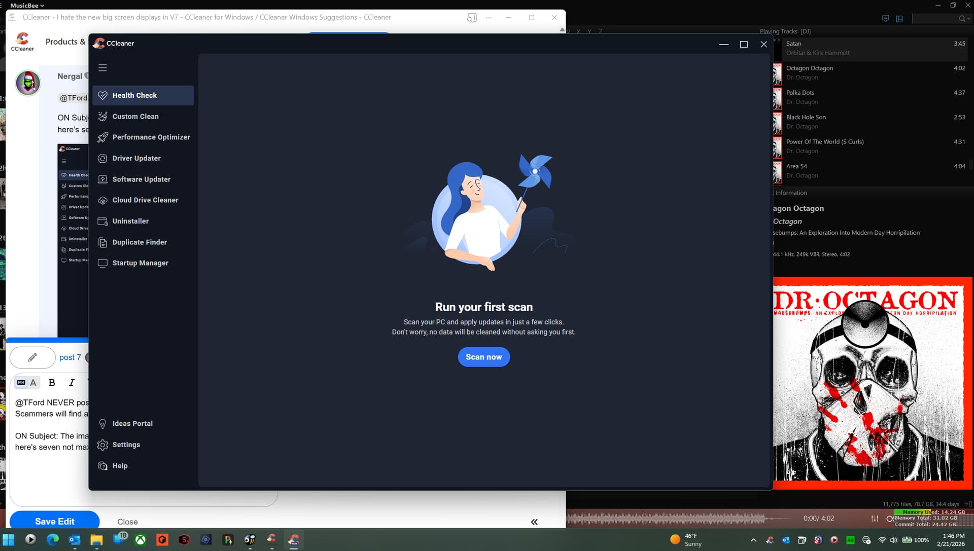 Also, I finally managed to fix the Avast issue – the reduced display on startup was showing only one button to go on from the first screen, and that was the Avast installer. And I finally managed to delete that Avast Software folder. So it looks like I now have a functioning copy of Ccleaner 7, But I have to say that I still prefer the smaller display window of the old version that lets me run other apps while Ccleaner runs – so I posted that under Ideas.