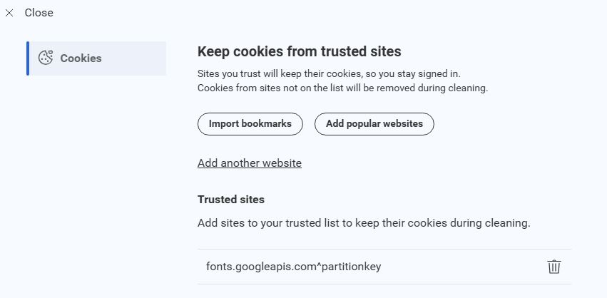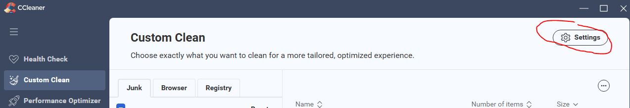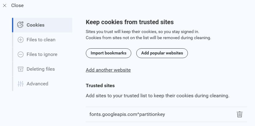 In Custom Clean it’s slightly different, because there are other options in the Custom Clean settings than just cookies:
