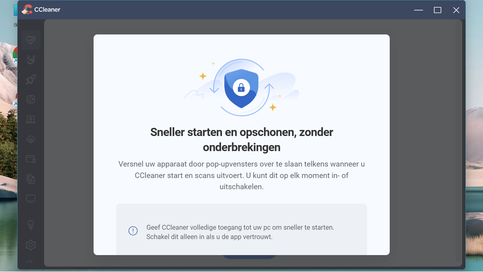 Waarom start ccleaner wel op, maar daarna kan ik niet verd