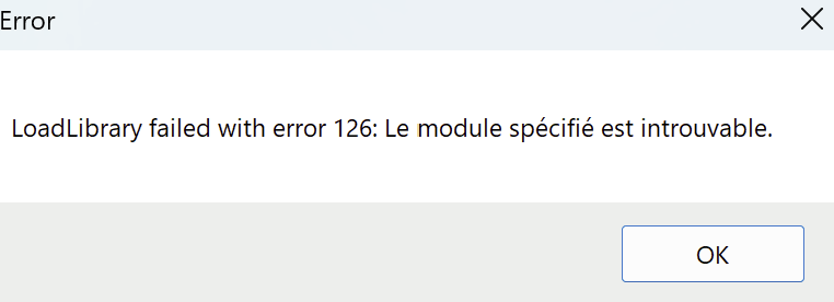 1- the message “LoadLibrary failed with error 126” is also displayed (as an example) with “OpenShot Video Editor” application and sometimes with “AMD Software” without launch of any specific application, so I guess an AMD driver doesn’t work well (AMD Radeon™ 880M Graphics or AMD Ryzen AI 9 365 w/ Radeon 880M…)