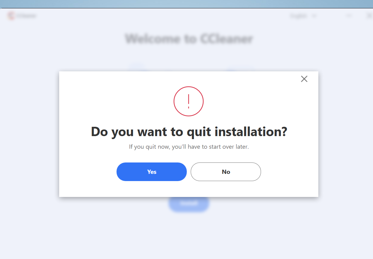 If using the ‘X’ as above just closes CCleaner altogether then why not? TBH it doesn’t look as if you can do anything else at this stage.