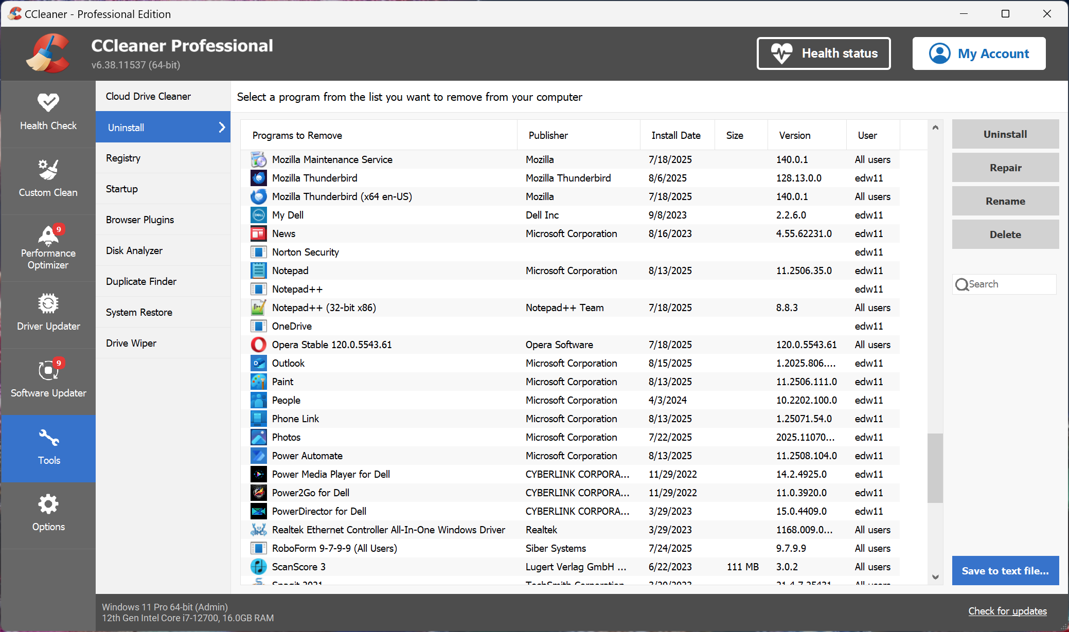 20250816 - Although I successfully uninstalled Norton 360 (presumably), in CCleaner, Uninstall tool cannot remove/delete/uninstall an otherwise empty listing. Uninstall shows only ‘Name,’ Norton Security, and ‘User’. Other columns, ‘Size’, ‘Version’, etc. are blank. I’ve cleaned the Register repeatedly. Searched for anything ‘Norton’ with File Explorer and deleted all those files manually, mostly JPGs. Very eery! Help please.