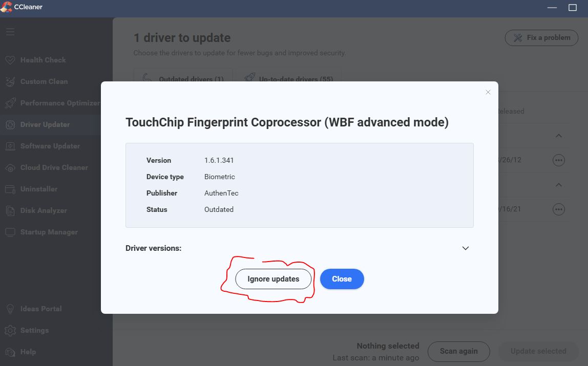 PS. I normally have that one set to be ignored, because if I do update it then the fingerprint reader stops working.