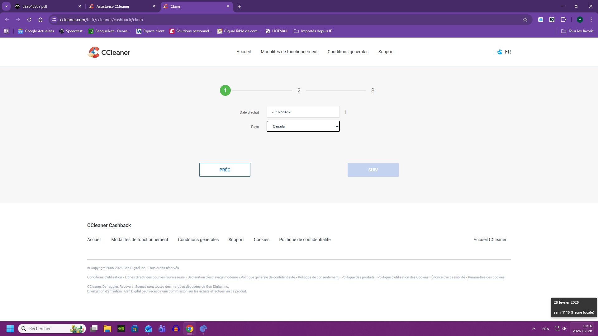 Bonjour je viens de m’abonner pour 2 ans et votre offre de cash back ne fonctionne pas je suis bloquer à la page une. Je ne peux cliquer sur suivant. Pouvez-vous résoudre mon problème. Est-ce une publicité mesongère? J,espère une réponse rapidement. Sinon je vais annuler cet achat le plus tôt possible.