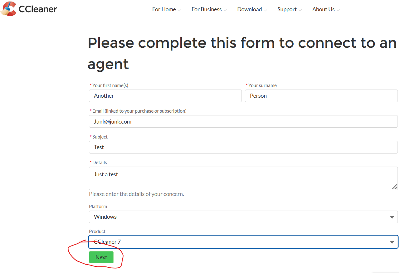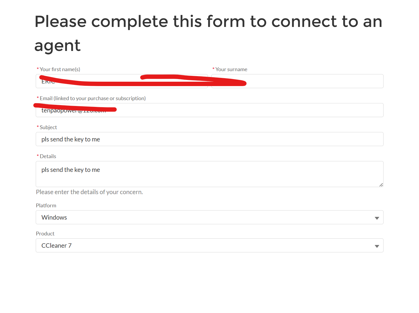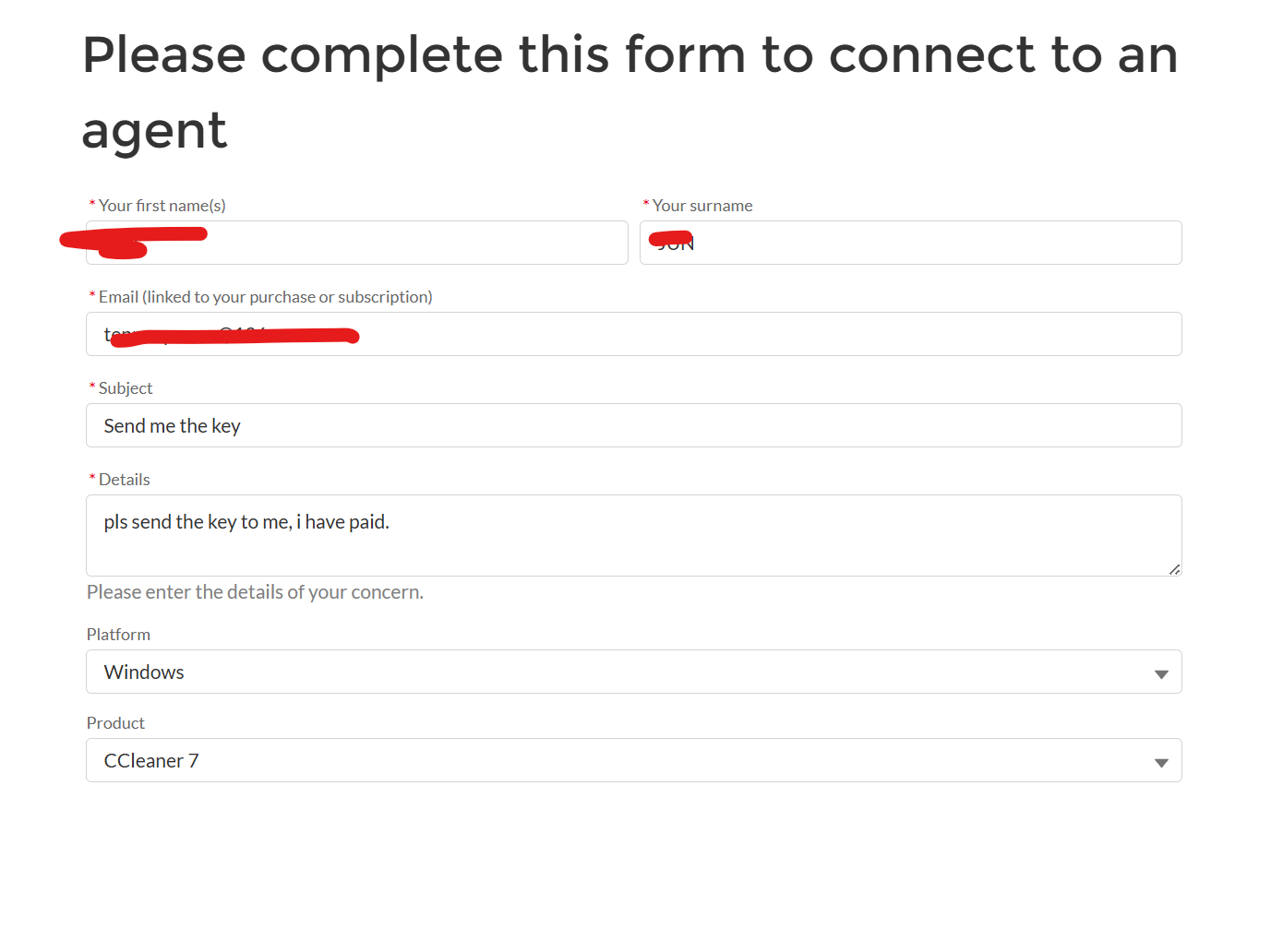 I have contacted the support@ccleaner.com , they said this is not their business. i have filled the information online as below, there is not next step action, can not submit the request! Is the fxxking company can not provide a emil or phone no. for communicating? Its really terrible service!!!