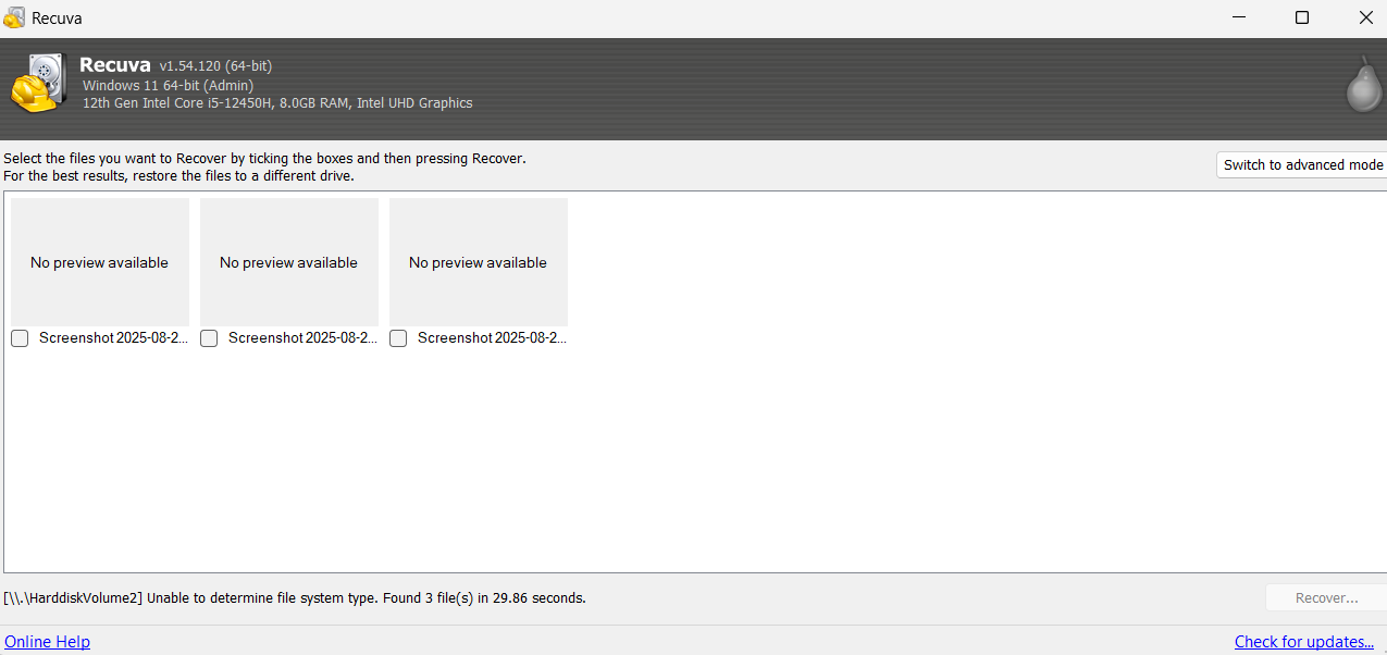 - Deletion Method: I deleted the files by using the Recycle Bin cleaning feature inside CCleaner. I did not use a secure wipe function.