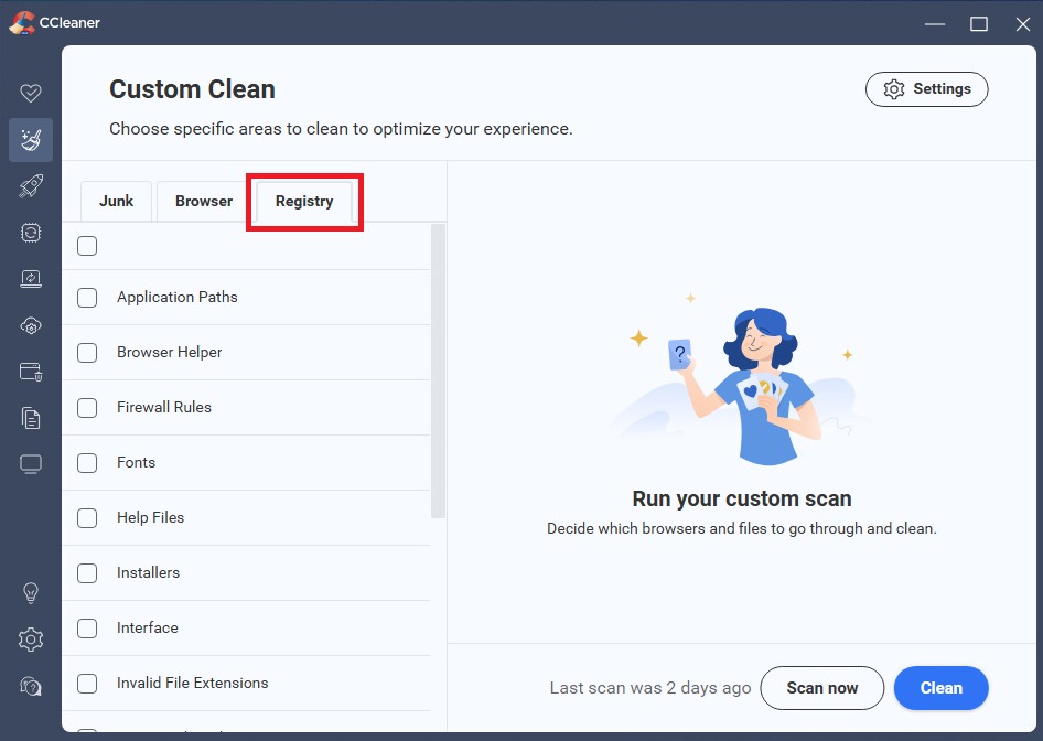 Registry Cleaner can now be found under the Customer Clean feature in CCleaner 7.