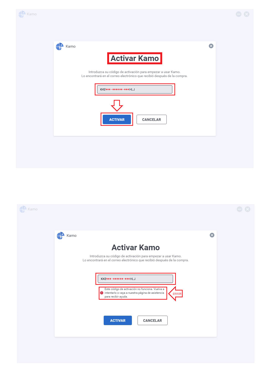 Sorpresivamente KAMO ha dejado de funcionar y no acepta el CÓDIGO DE ACTIVACIÓN que le corresponde en una nueva instalación.