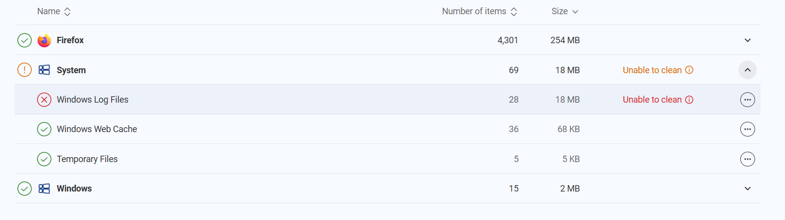 I have run CCleaner several times and find it cannot clean some things, why? I never saw that on the previous versions. Most recently it was Windows Logs files that it could not clean.