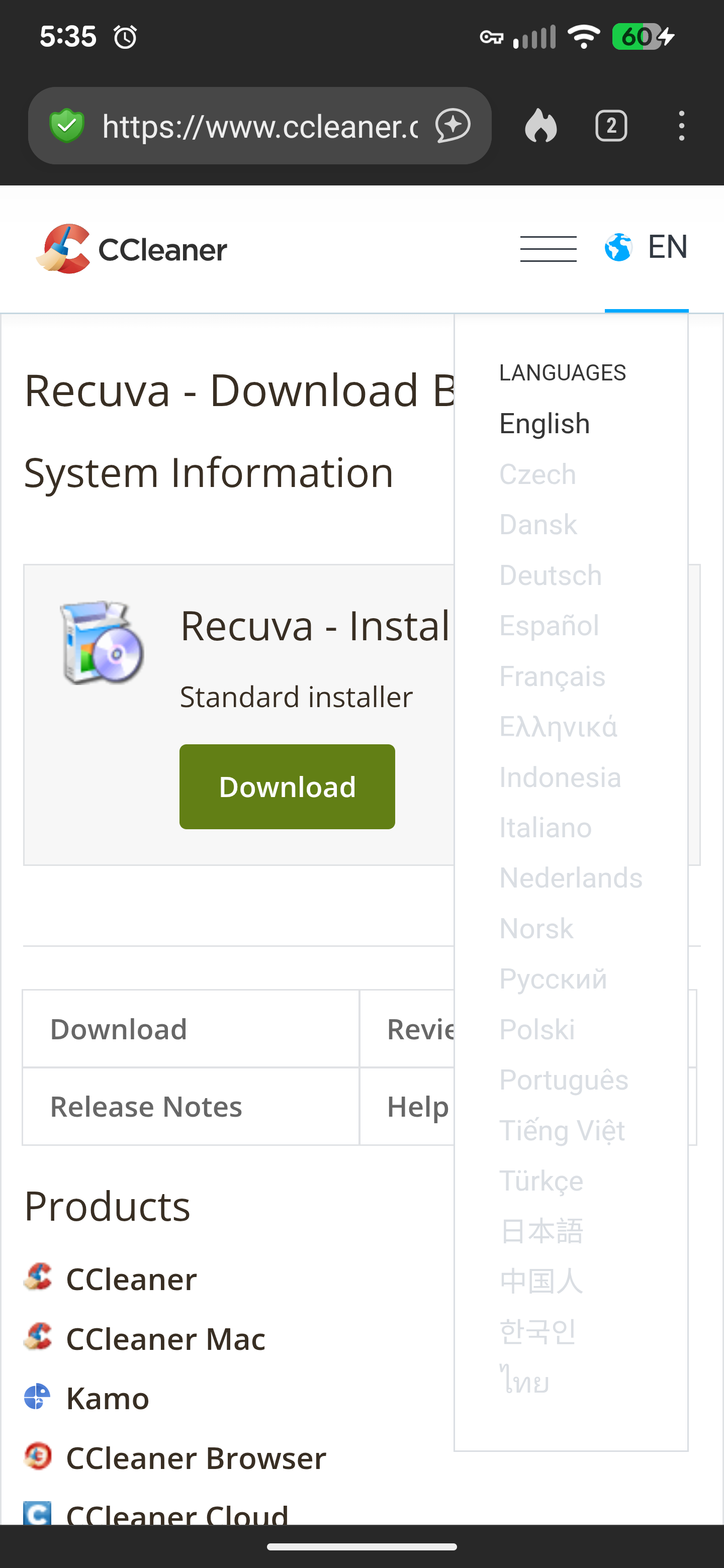No matter which browser I am using and how many attempts I did try, still unable to download Recuva? Any problems with the server?
