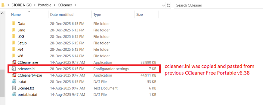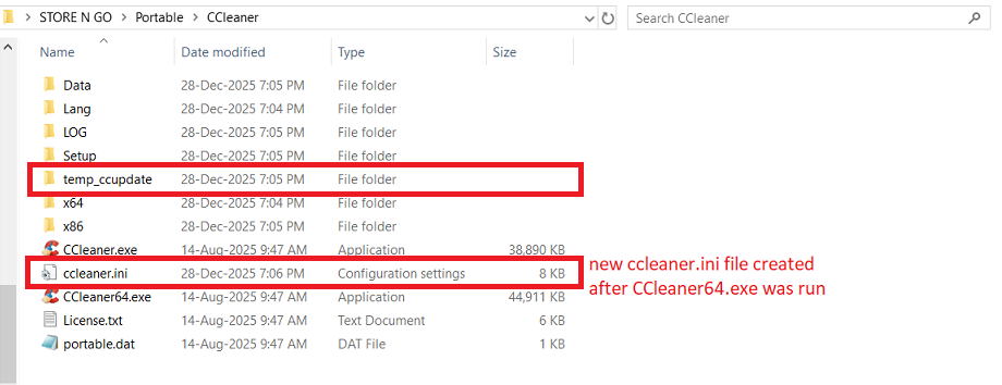 I used the method described in TEST 2 to update my CCleaner Free Portable from v6.38 (rel. 23-Jul-2025) to v6.39 (rel. 20-Aug-2025) back in August 2025 (i.e., by keeping the existing ccleaner.ini file to preserve my custom CCleaner Free Portable settings), which probably explains why I’ve never seen the tmp_ccudpate subfolder before.